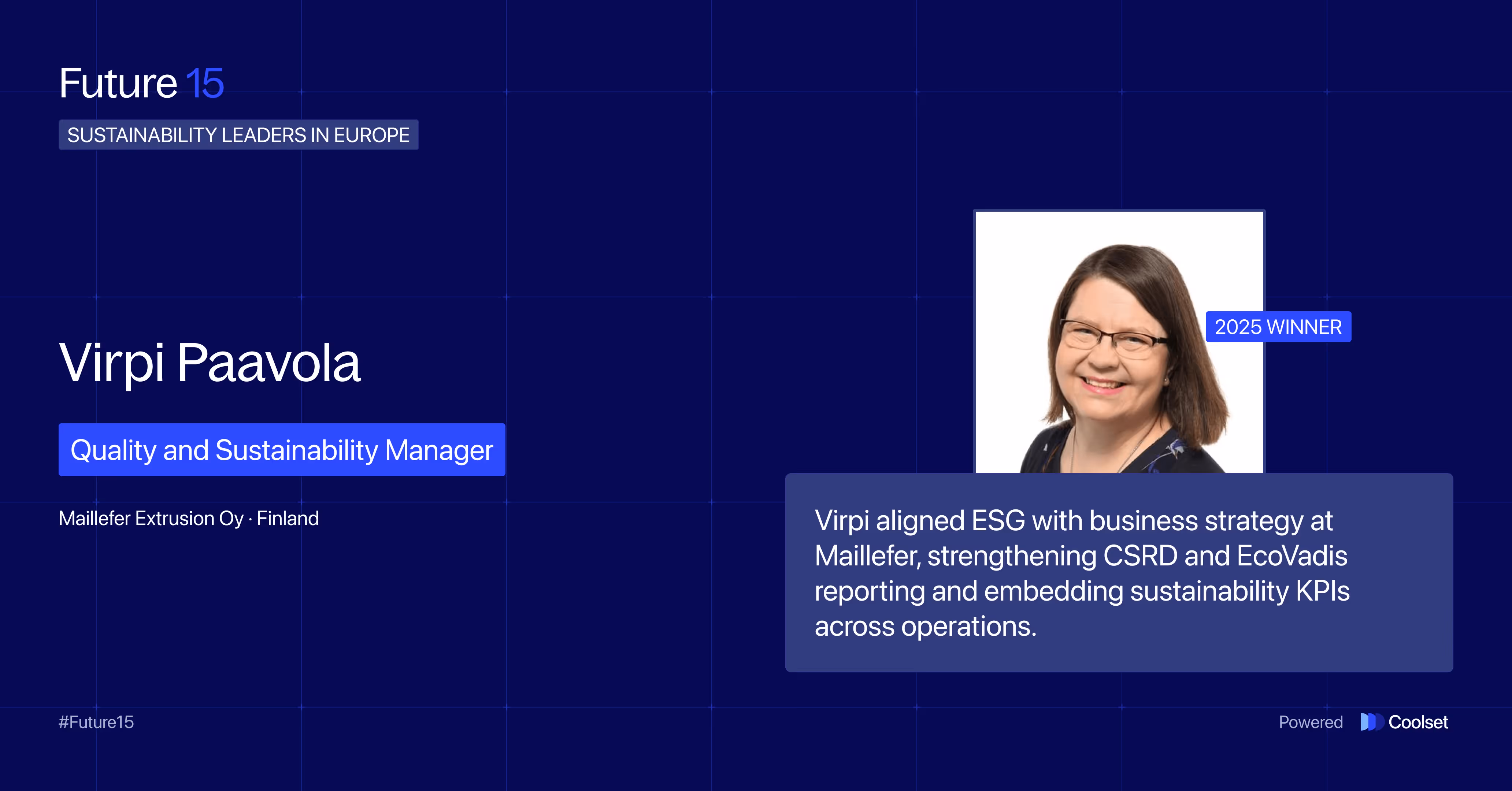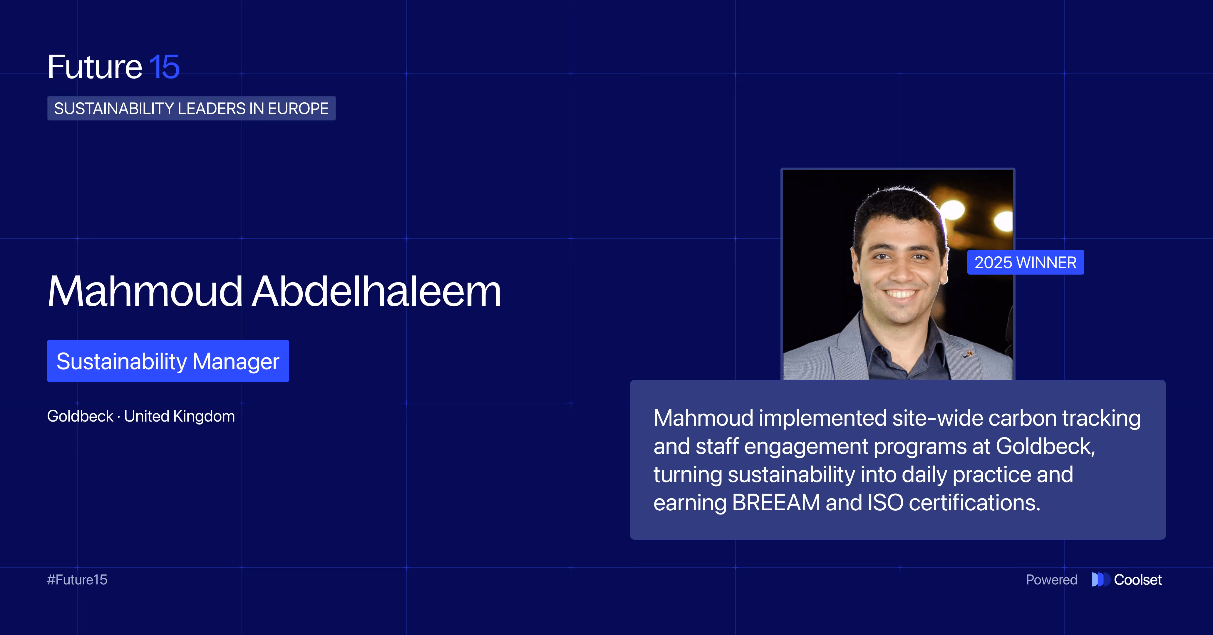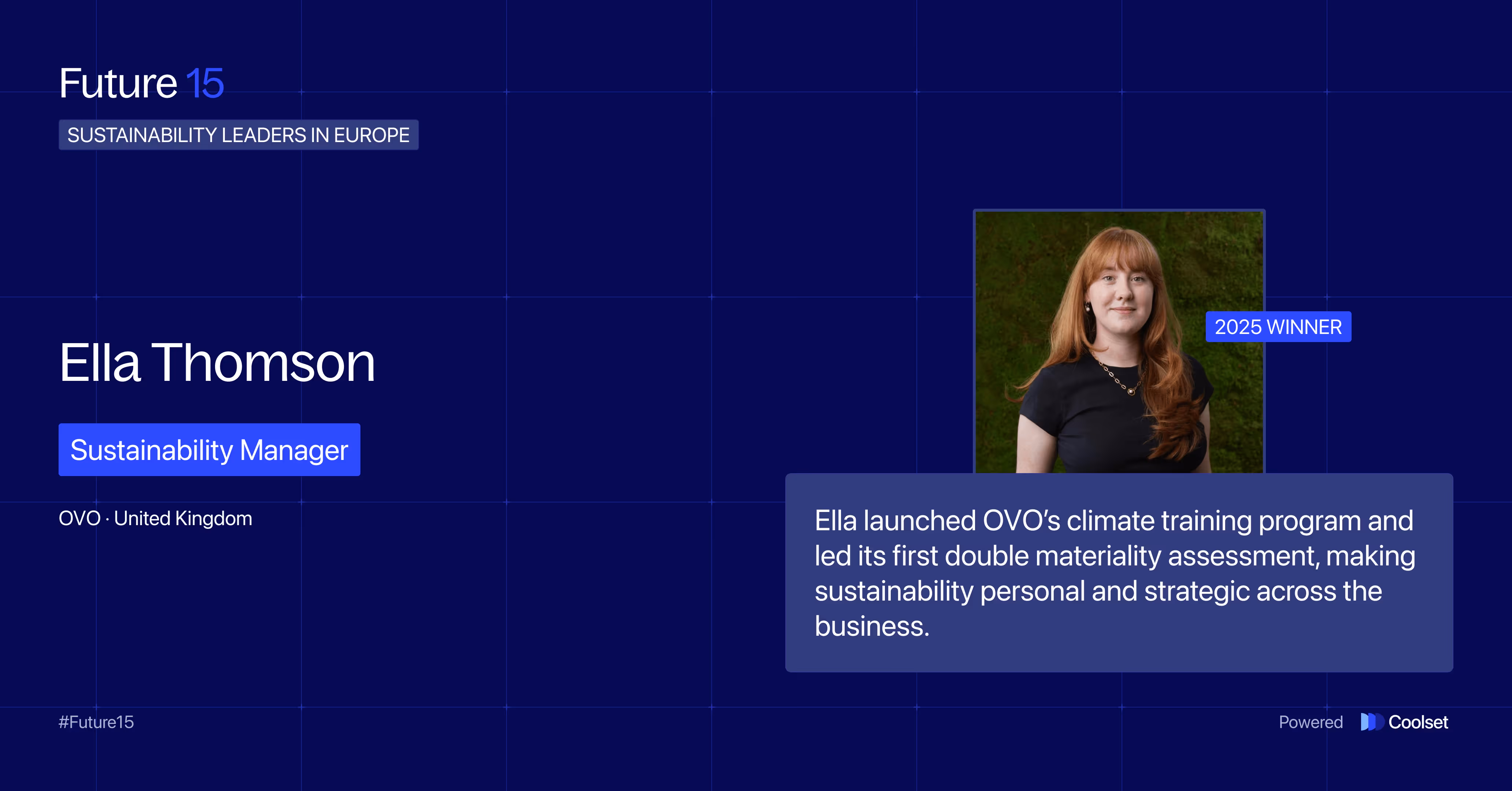 Now, without further ado, meet the change makers (in no particular order) defining the next chapter of corporate sustainability: Coolset’s Future 15 – Class of 2025.