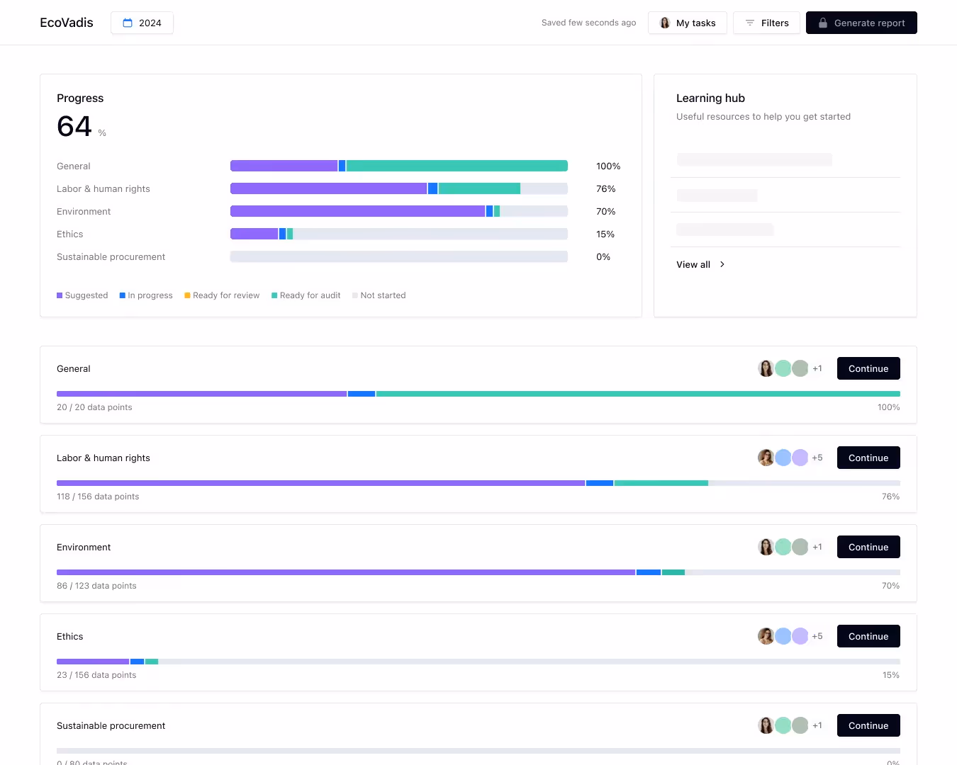 The EcoVadis module consolidates evidence management, progress tracking and submission workflows into one structured environment, taking the friction out of the process.