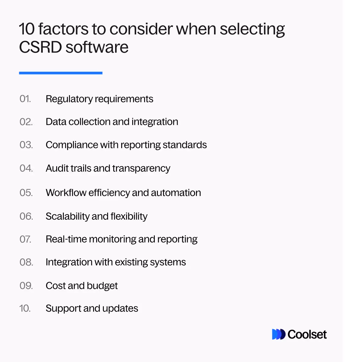 Now that we’ve covered why CSRD software is important and what it’s used for, here are the 10 factors to keep in mind when picking the right tool for your business: