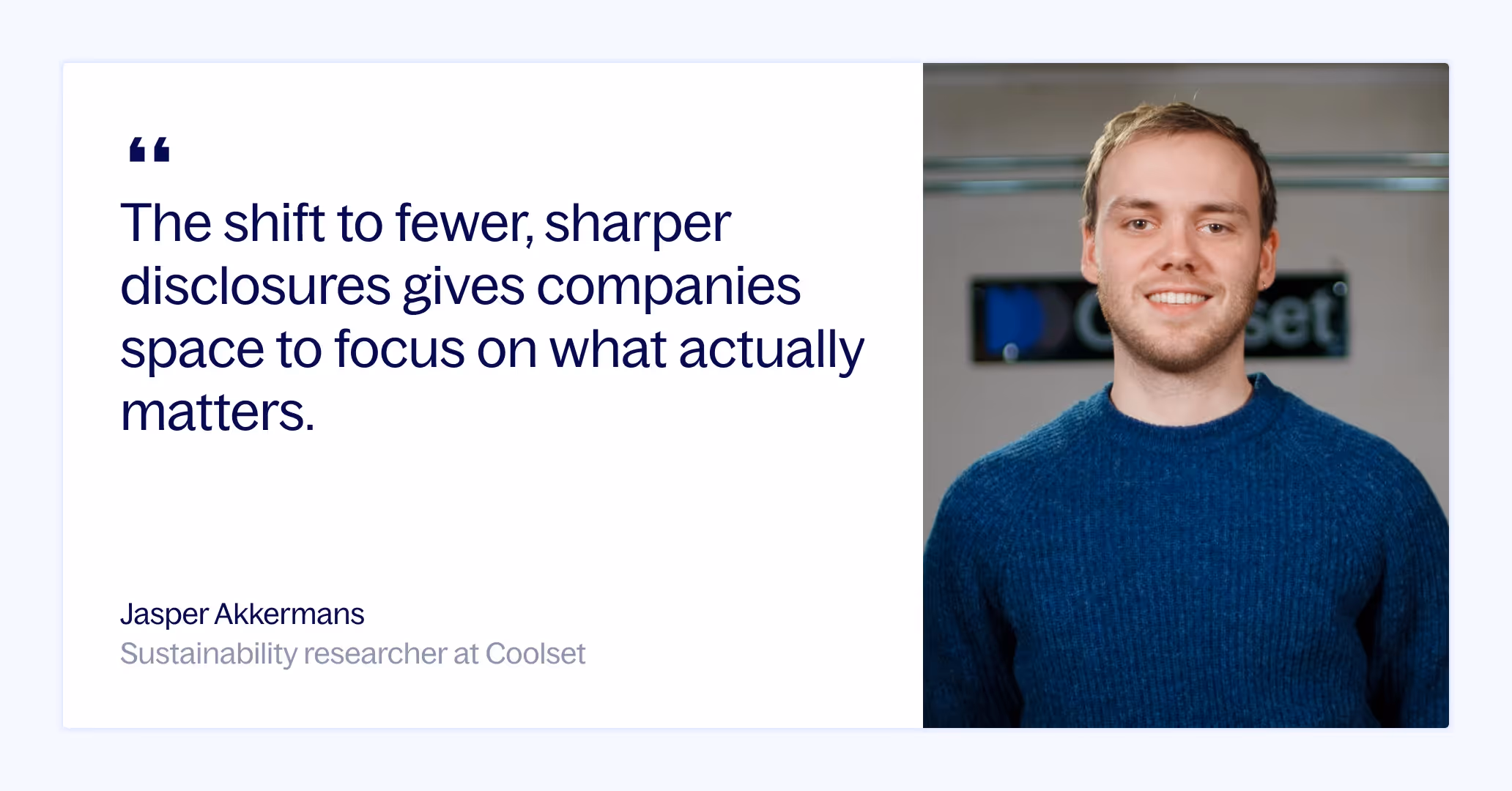 A key point: double materiality is here to stay. Companies will still need to report both how sustainability issues impact their business and how their activities impact people and planet. What’s changing is the process – companies will apply clearer criteria to identify what’s material, so reporting is more focused and less mechanical.