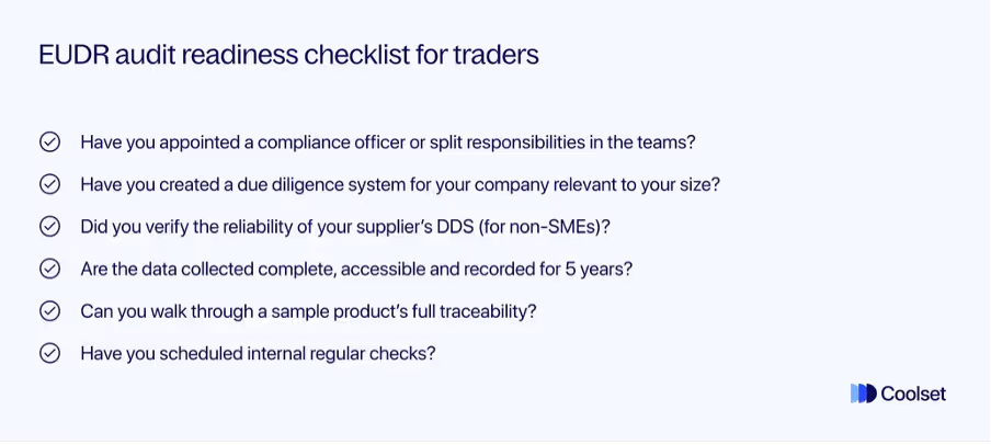 Use this short checklist to review your EUDR audit readiness and ensure nothing slips through the cracks.