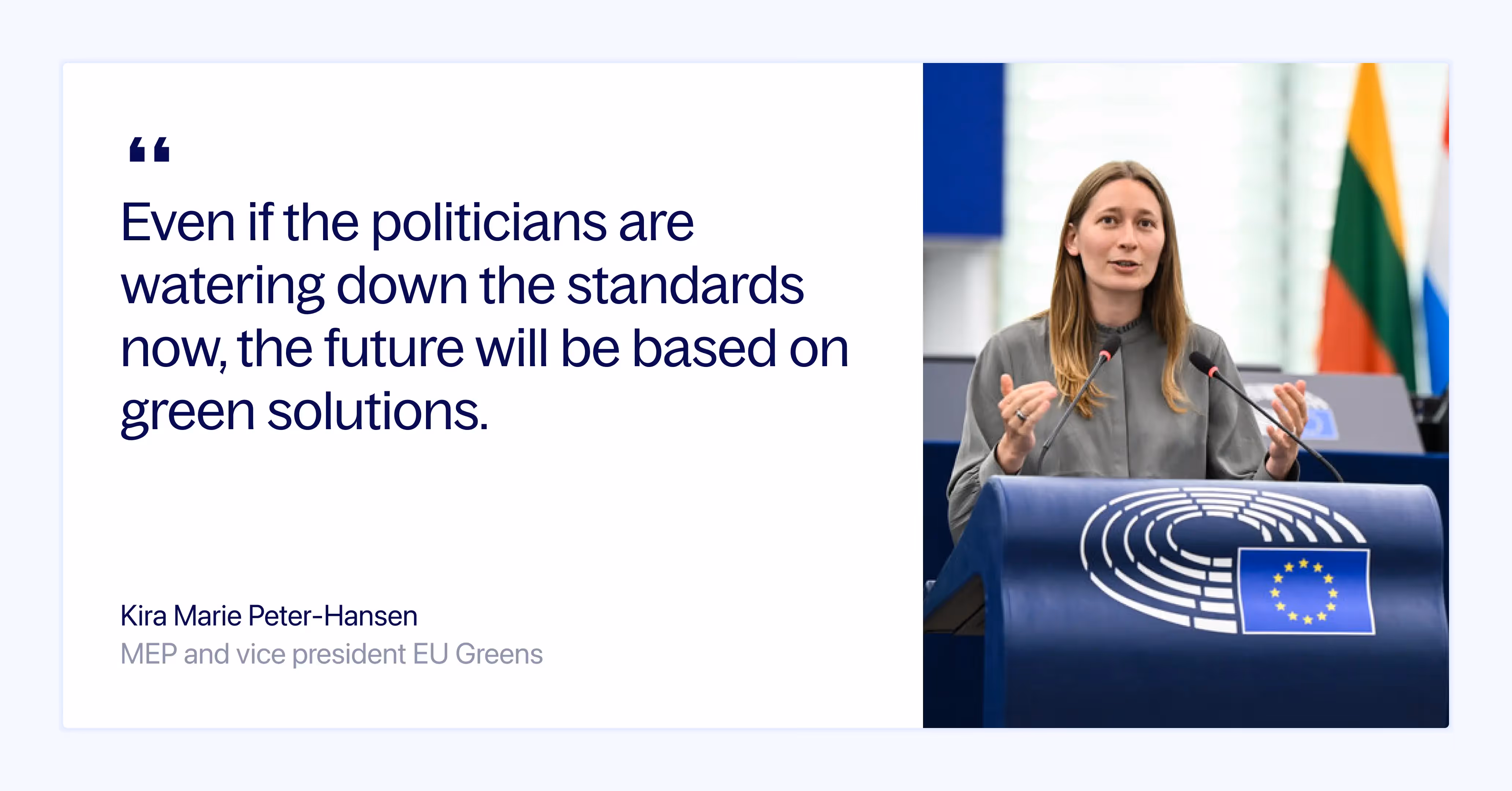 This alignment, she explains, has opened a political window – one that could be used to challenge not just the Omnibus, but the wider sustainability framework built over the last term. “So of course, there is some political room to challenge our current legislation.”