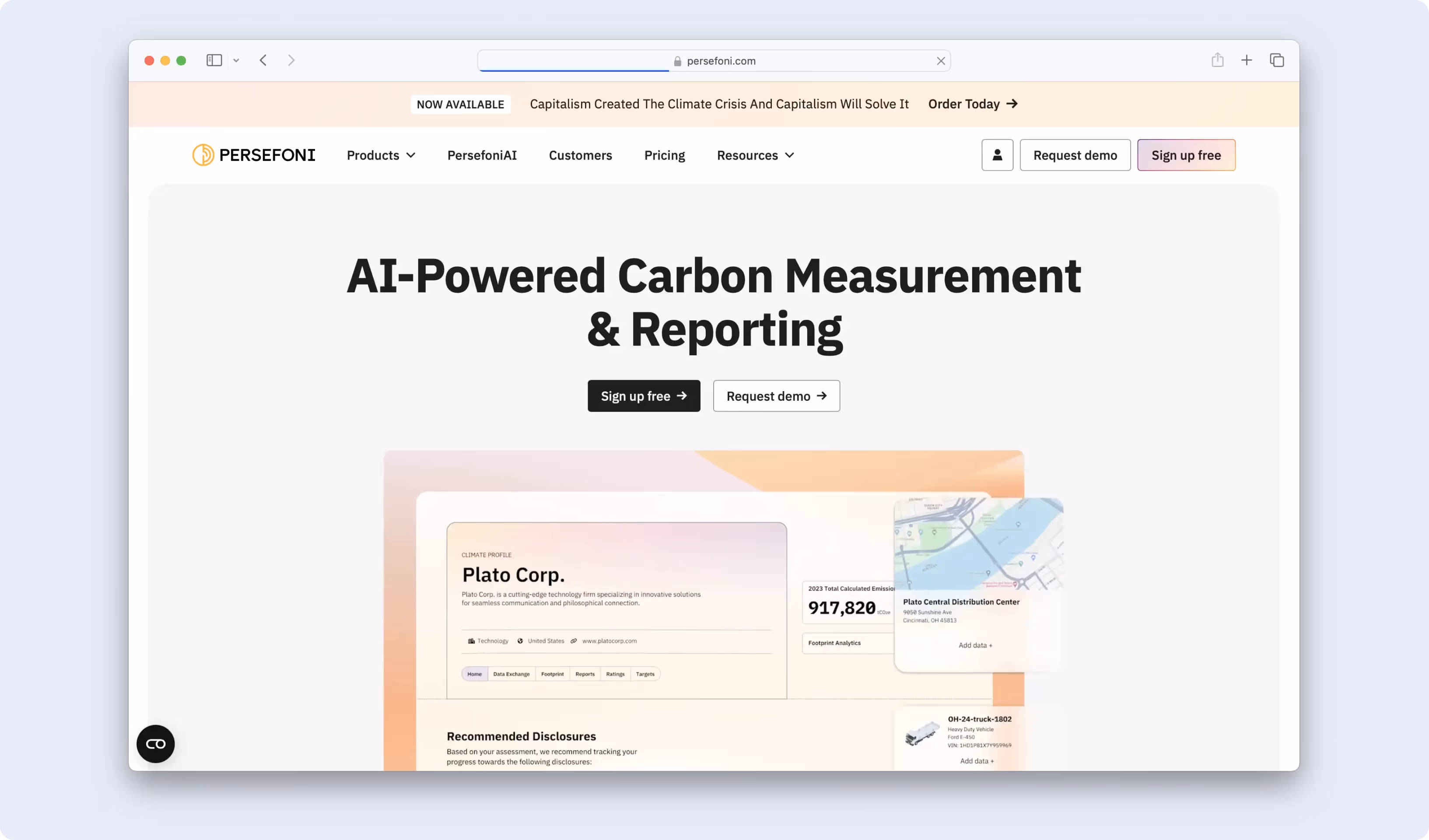 Founded in 2020, Persefoni is a comprehensive Climate Management & Accounting Platform (CMAP) based out of Arizona. The software helps businesses and financial institutions manage their carbon emissions and meet climate-related regulatory requirements with ease.