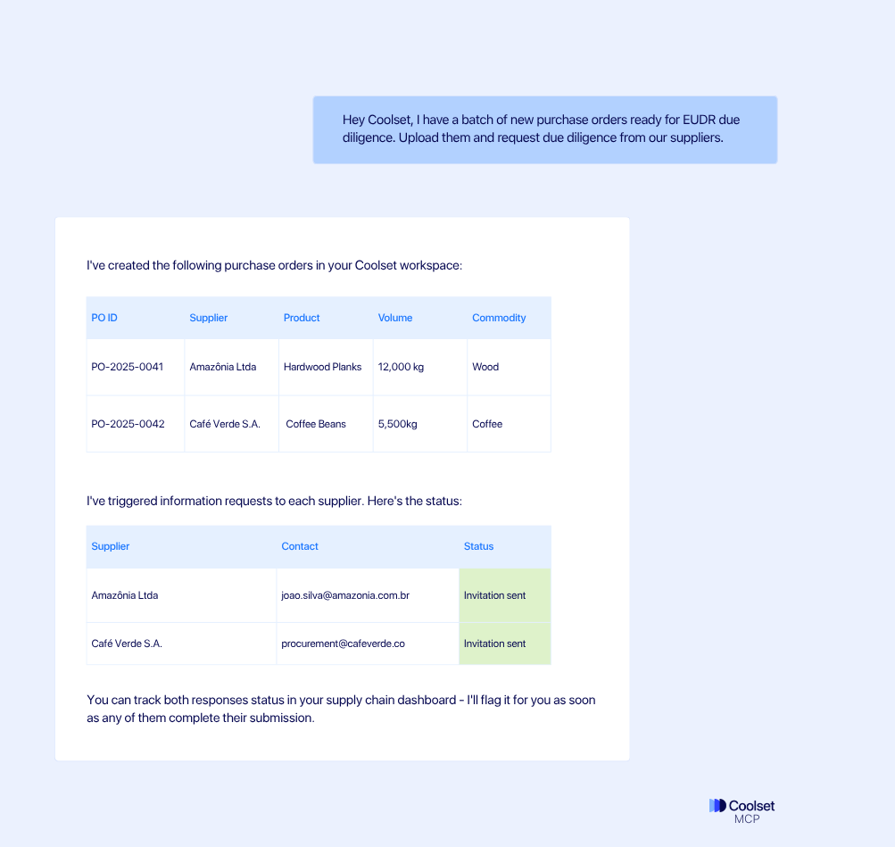 At Coolset, we see compliance not as a box to tick, but as the foundation for building a better business. Explore these features and more to enhance your sustainability efforts and ensure regulatory and supply chain compliance. Get in touch.