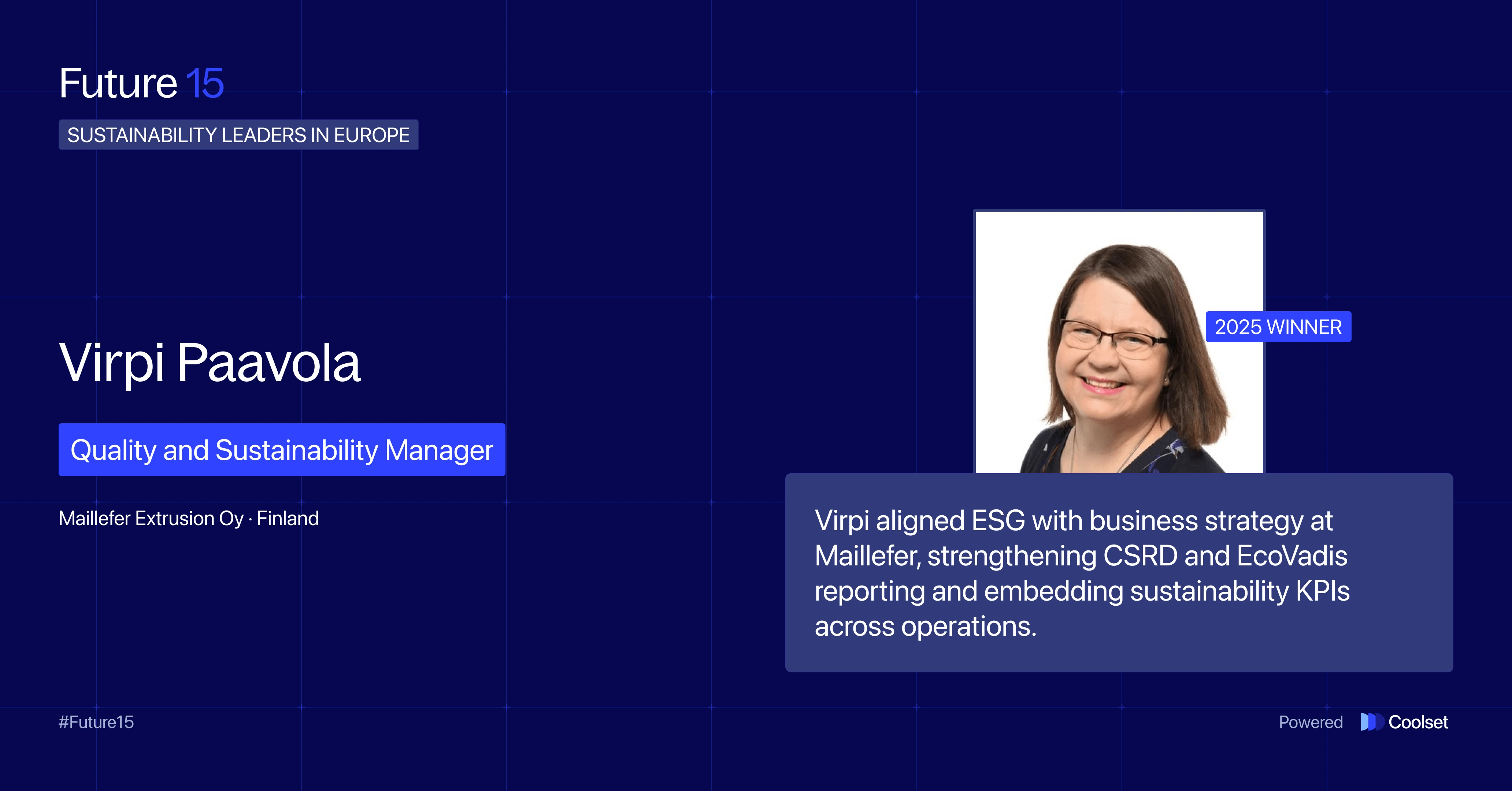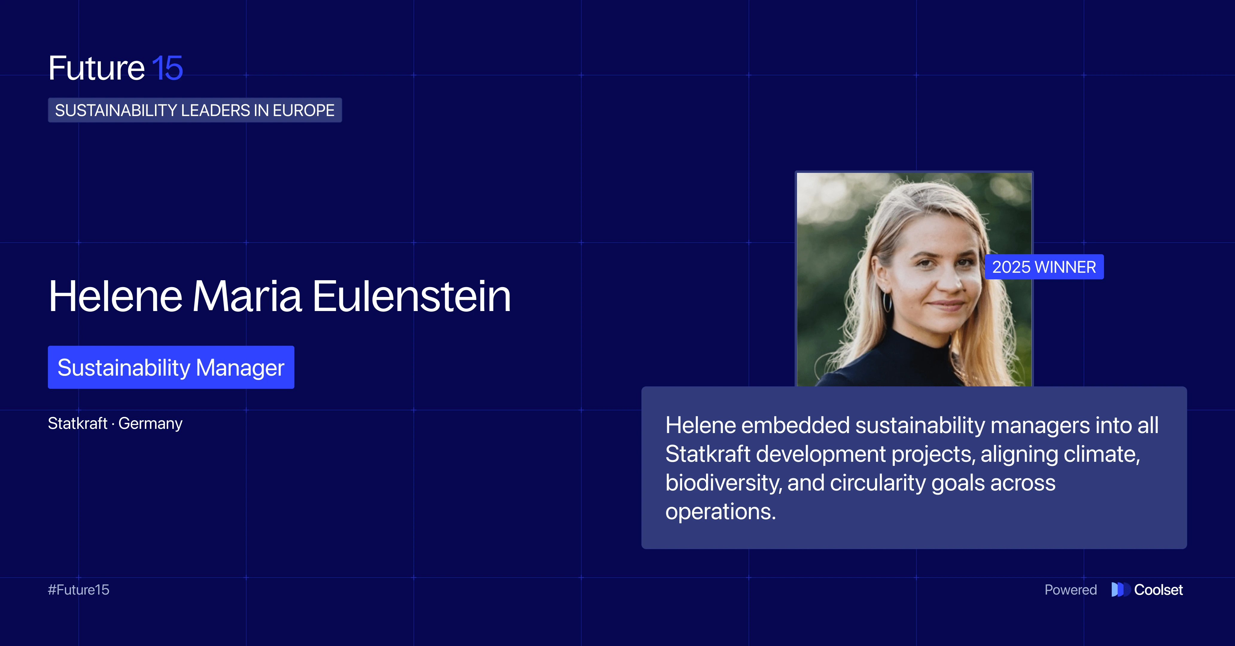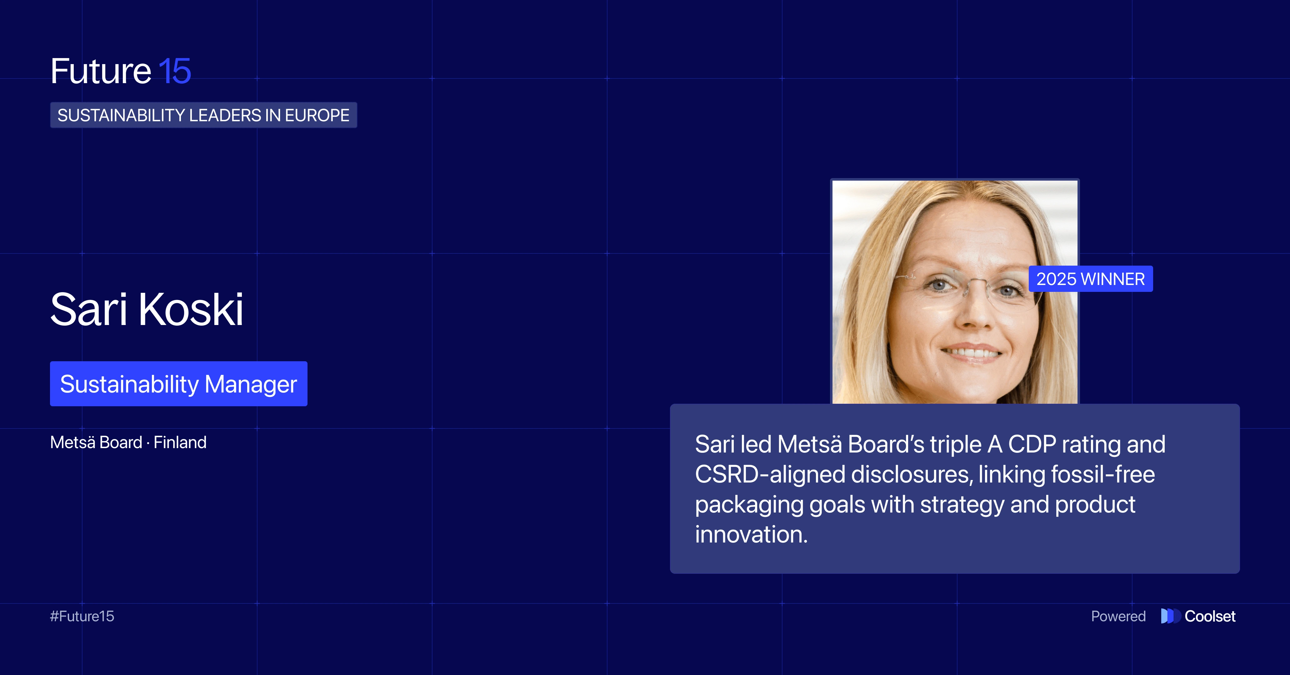 Now, without further ado, meet the change makers (in no particular order) defining the next chapter of corporate sustainability: Coolset’s Future 15 – Class of 2025.