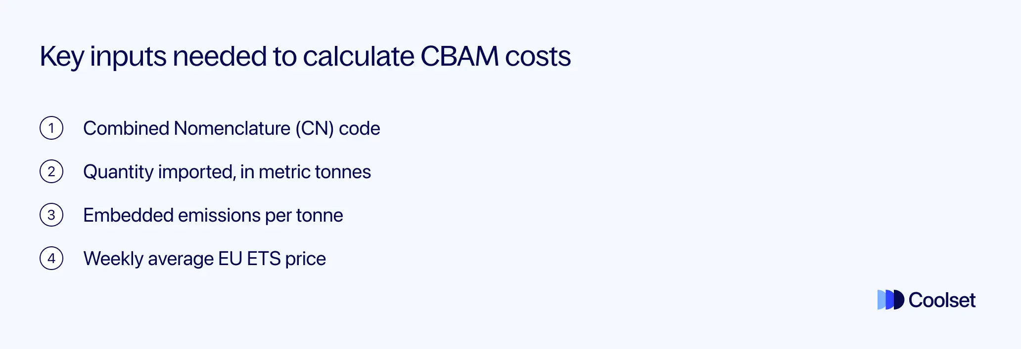 Um Ihre CBAM-Kosten genau zu schätzen, müssen Sie einige wichtige Datenpunkte für jede Art von importierter Ware sammeln.